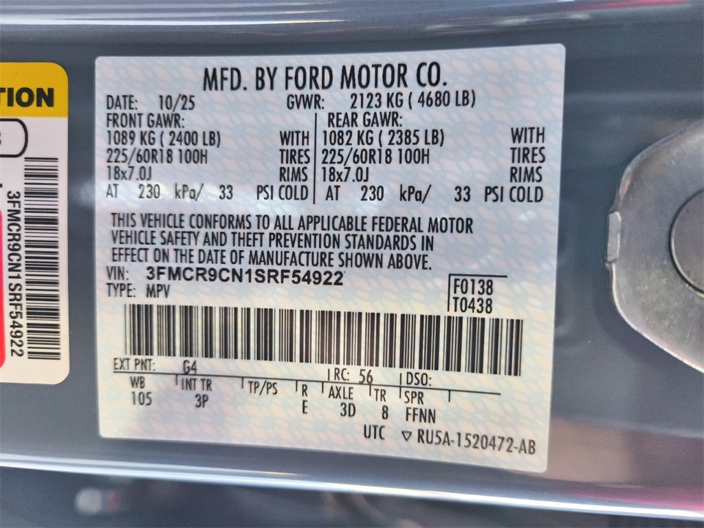 VIN: 3FMCR9CN1SRF54922