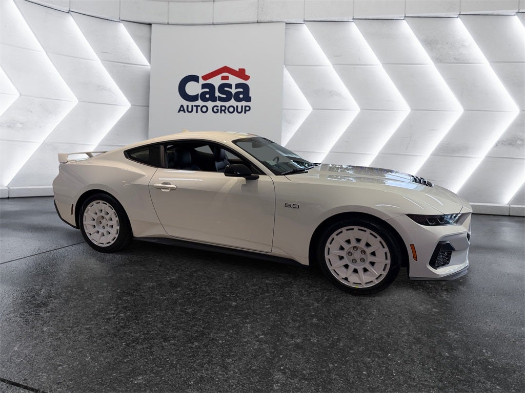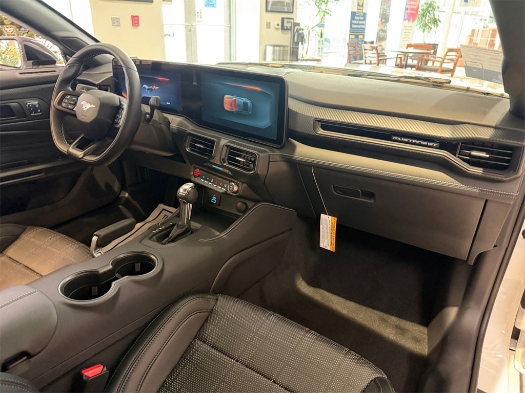 Oxford White 2026 Ford Mustang GT Premium FX RWD 10-Speed Automatic Premium Unleaded V-8 5.0 L/302 ABS brakes, Alloy wheels, Compass, Electronic Stability Control, Front dual zone A/C, Heated front seats, Illuminated entry, Low tire pressure warning, Remote keyless entry, Traction control.