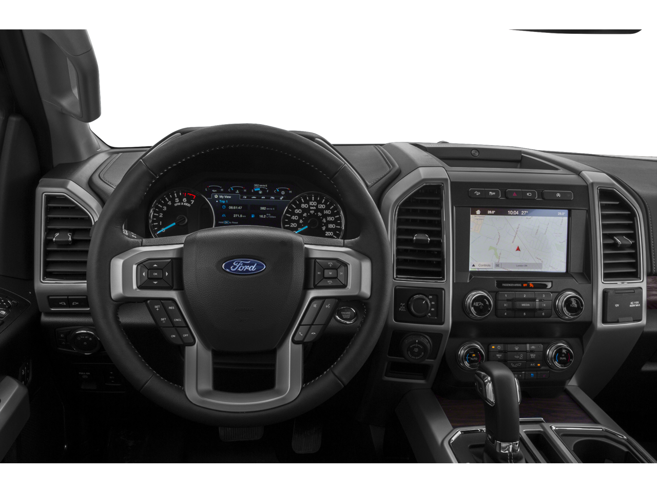 Step inside the luxurious cabin and you'll be greeted by premium leather-trimmed bucket seats with heating and ventilation. The voice-activated touchscreen navigation system and B&O Play premium audio system provide seamless connectivity and an exceptional multimedia experience. The Lariat's attention to detail is evident in features like the power tilt/telescoping steering column with memory, remote start system, and integrated trailer brake controller.