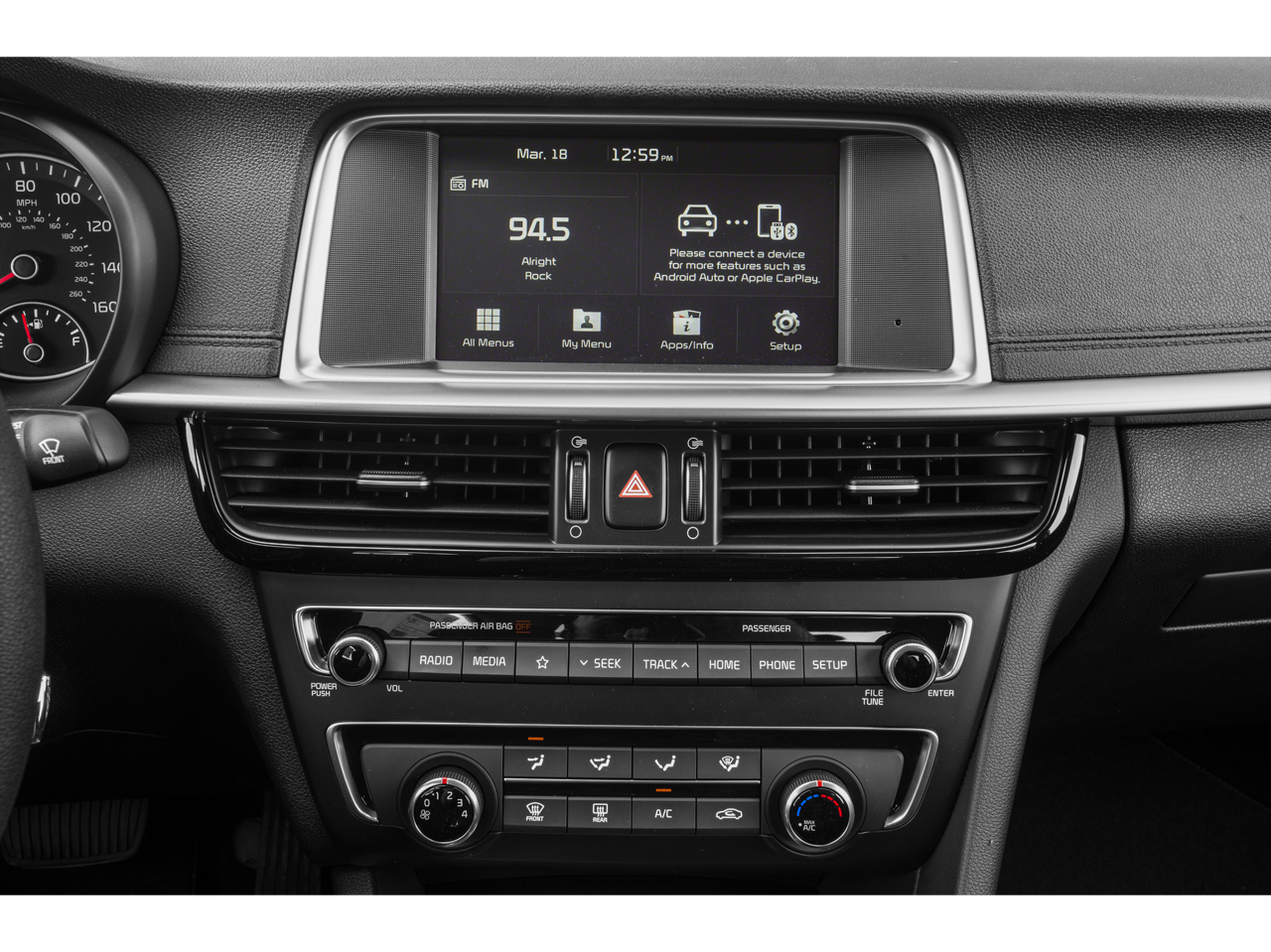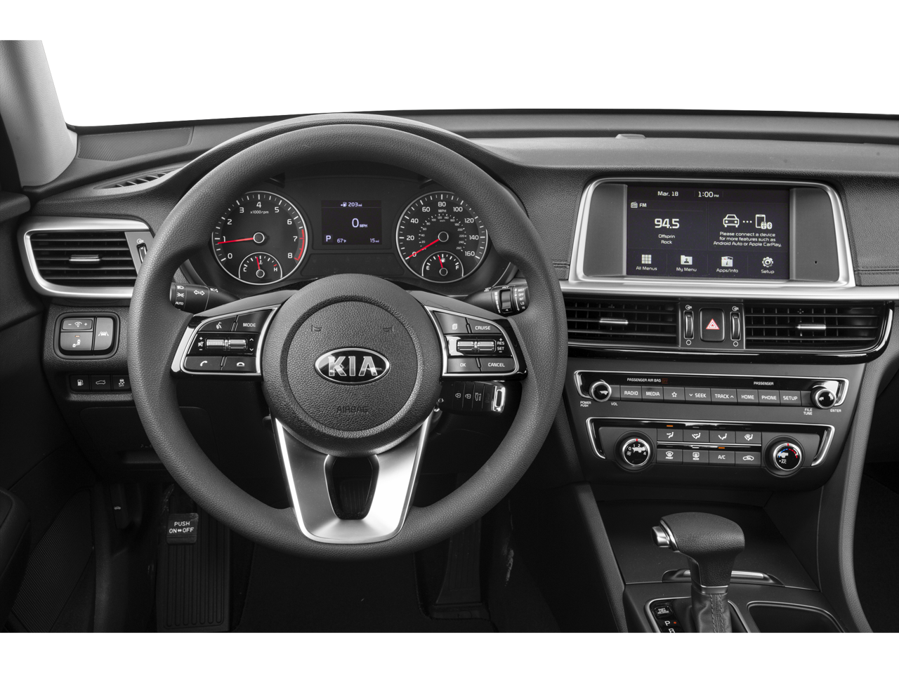 24/32 City/Highway MPG "Bluetooth®", "Remote Keyless", "4WD", "USB Port", "Blind-spot Monitoring", "Lane Departure Warning", "Apple CarPlay and Android Audio", Optima LX, 2.4L I4 DGI DOHC, FWD, Snow White Pearl, Black Cloth.
