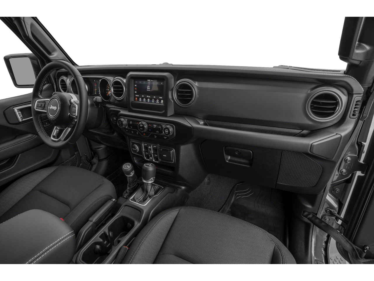 Inside, you'll find a well-appointed cabin with features like dual-zone automatic climate control, a 7-inch touchscreen infotainment system with Apple CarPlay and Android Auto, and a leather-wrapped steering wheel and shift knob. The Sahara Altitude also boasts a host of advanced safety technologies, including ParkView Rear Back-Up Camera, Brake Assist, and Electronic Stability Control, ensuring a confident and secure driving experience.