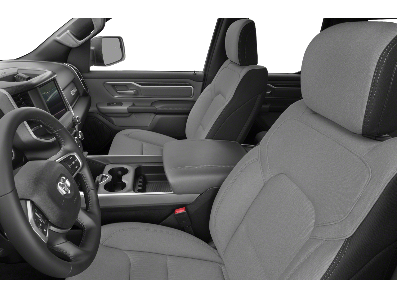 The spacious and well-appointed interior of this Big Horn/Lone Star model provides ample room for passengers and cargo, with features like heated front seats, a heated steering wheel, and a premium audio system to keep you comfortable and entertained on the road.