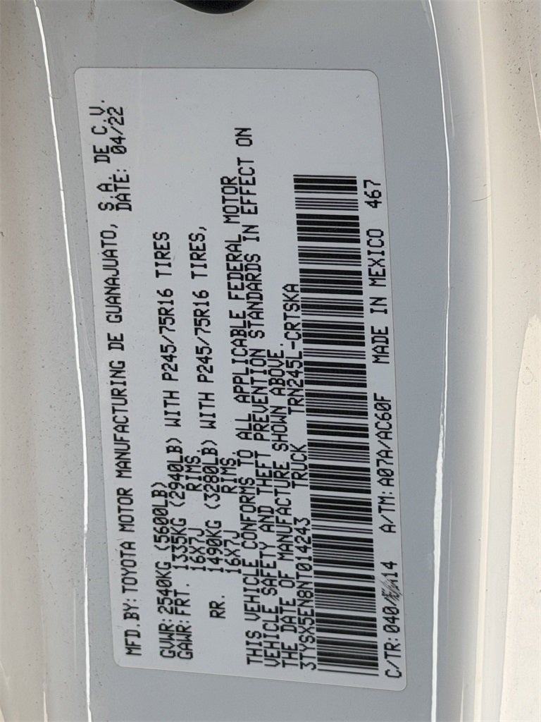 VIN: 3TYSX5EN8NT014243