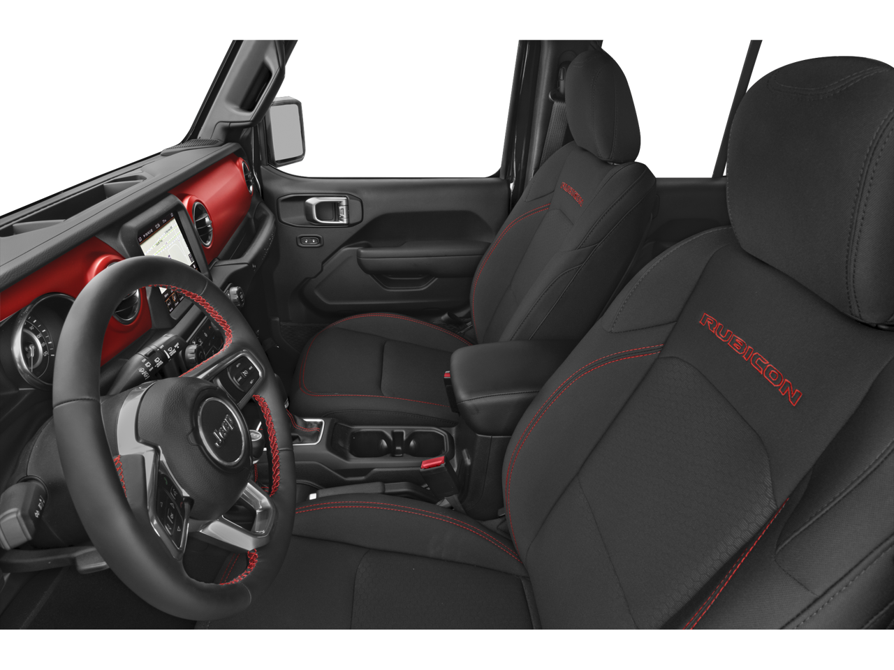 Inside, the Wrangler Rubicon offers a premium, well-equipped cabin with features like the Uconnect 4C Nav system with an 8.4-inch display, dual-zone automatic climate control, and a premium audio system with 9 speakers. The Black 3-Piece Hard Top provides year-round versatility, while the LED lighting group enhances visibility and style.