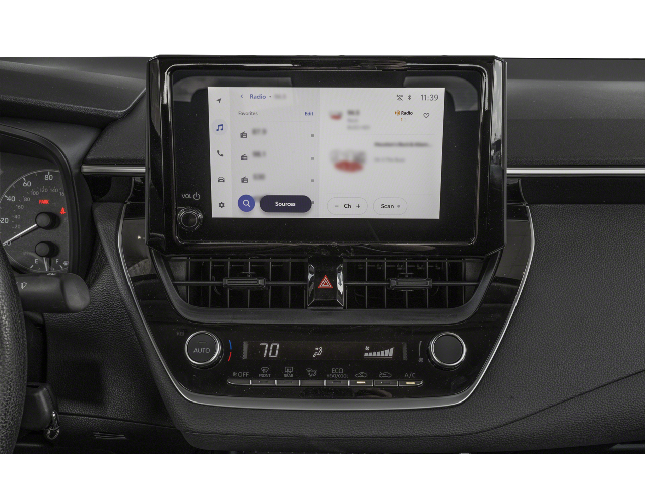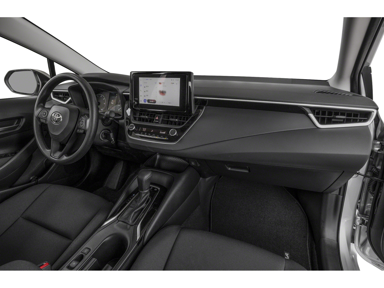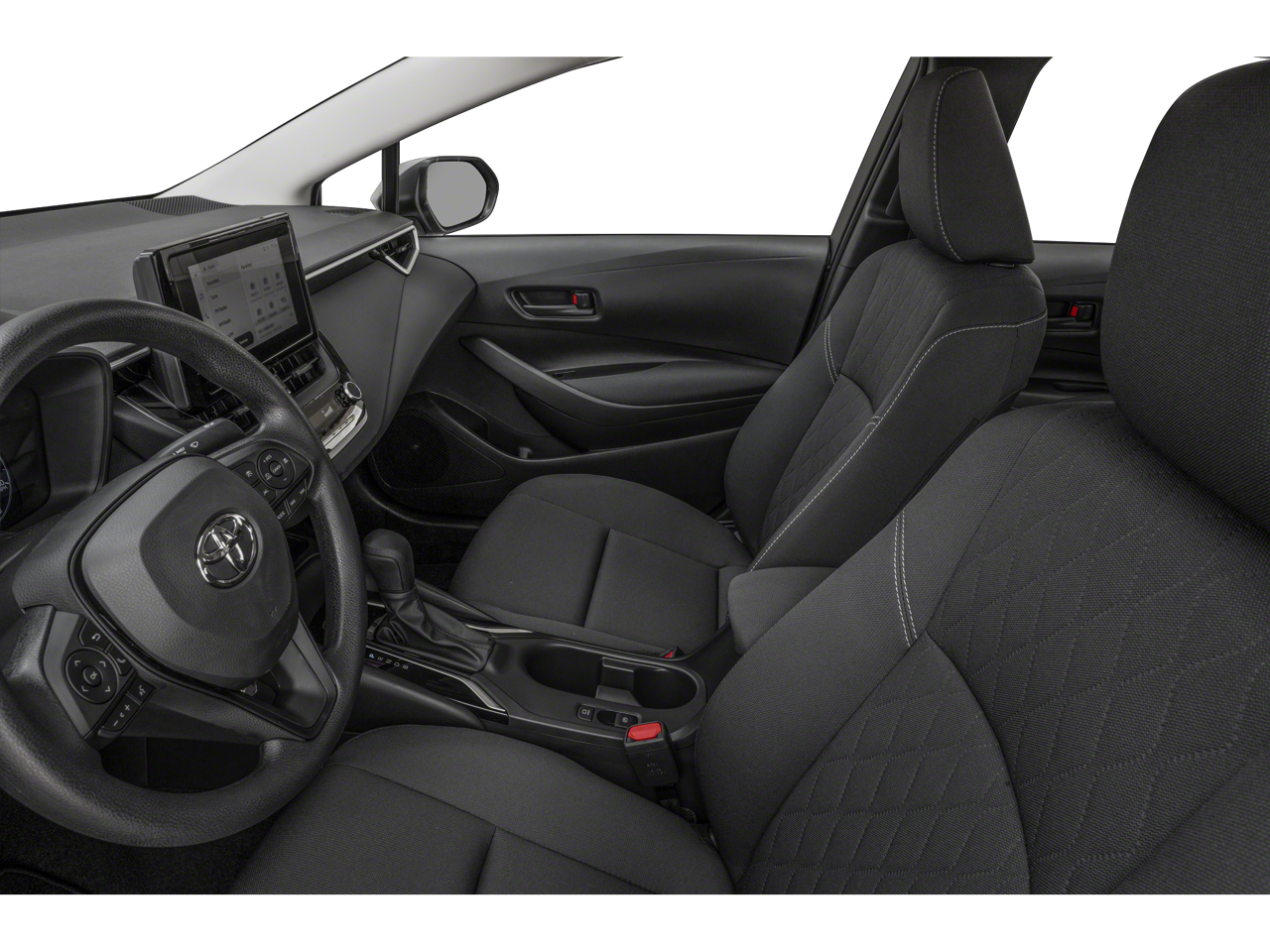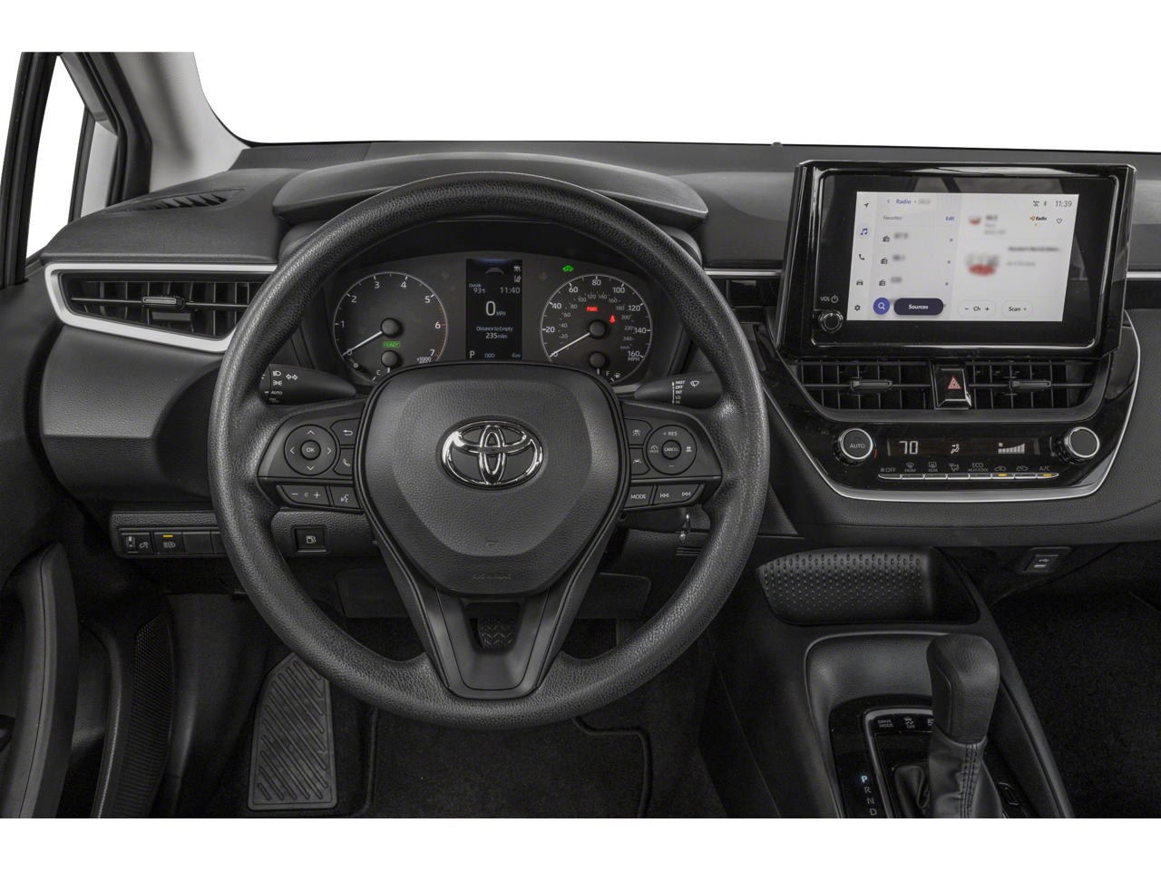 50/43 City/Highway MPG "Navigation", "Bluetooth®", "Remote Keyless", "USB Port", "Heated Seats", "Blind-spot Monitoring", "Lane Departure Warning", "Apple CarPlay and Android Audio", Corolla Hybrid LE, 1.8L DOHC 16V VVT, FWD, Midnight Black Metallic, Light Gray Cloth.